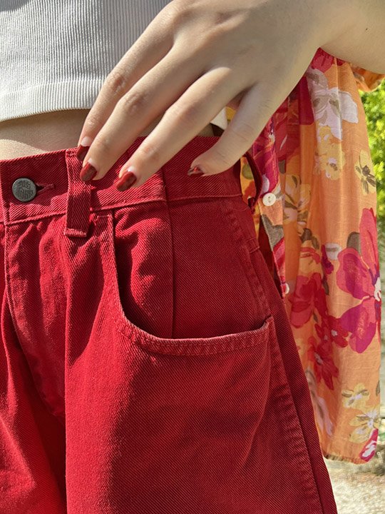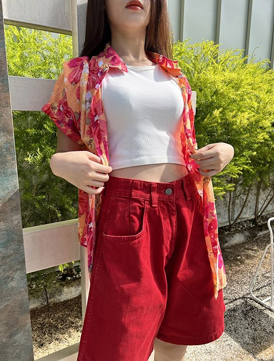 ยีนส์ขาสั้น โทนสีแดง/ ส้ม/ เหลือง