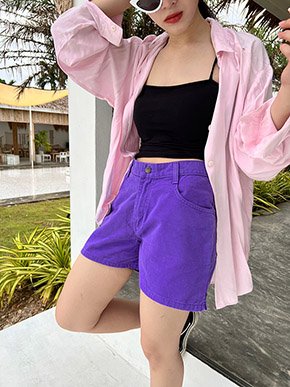 ยีนส์ขาสั้น โทนสีชมพู/ ม่วง